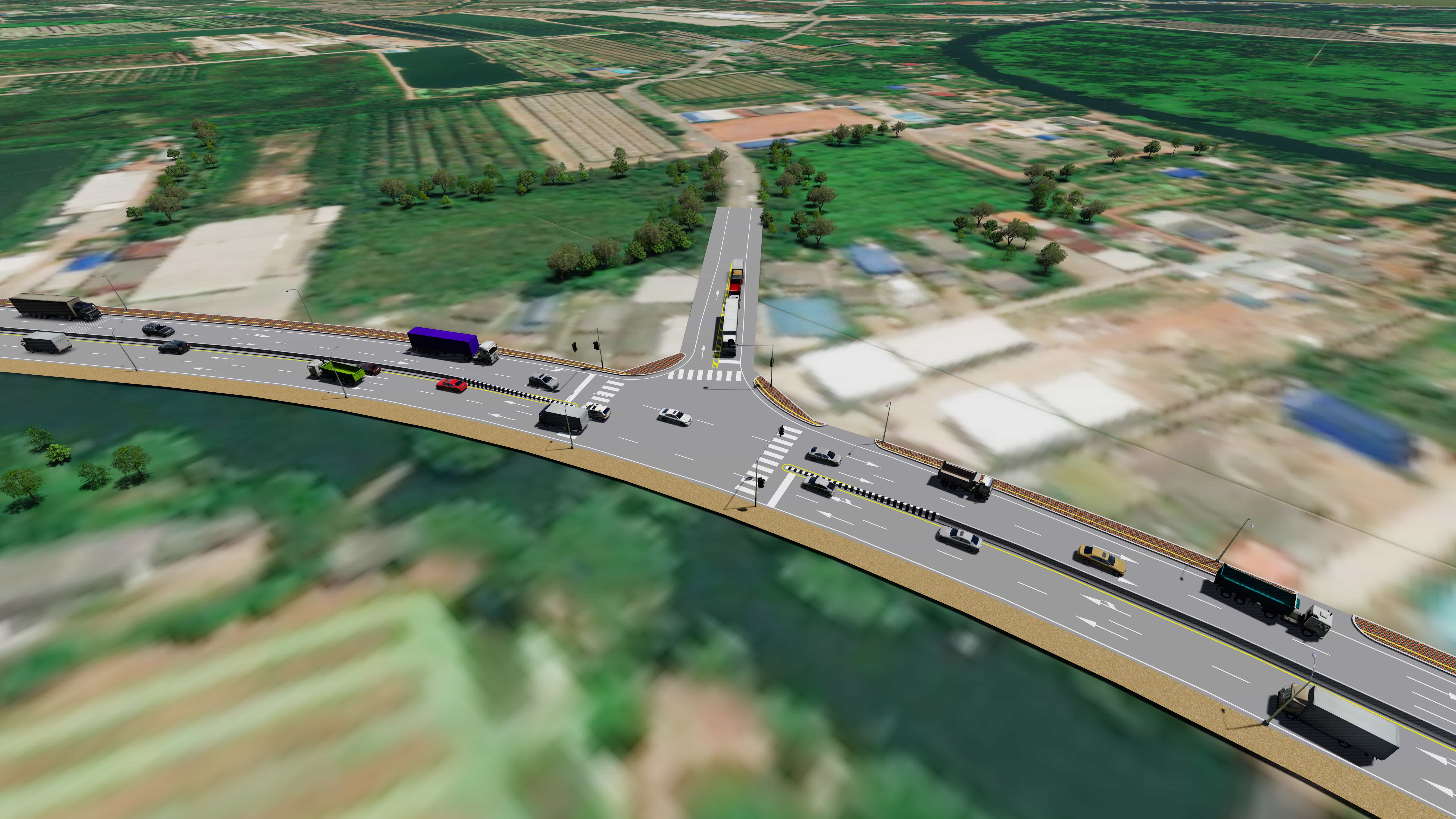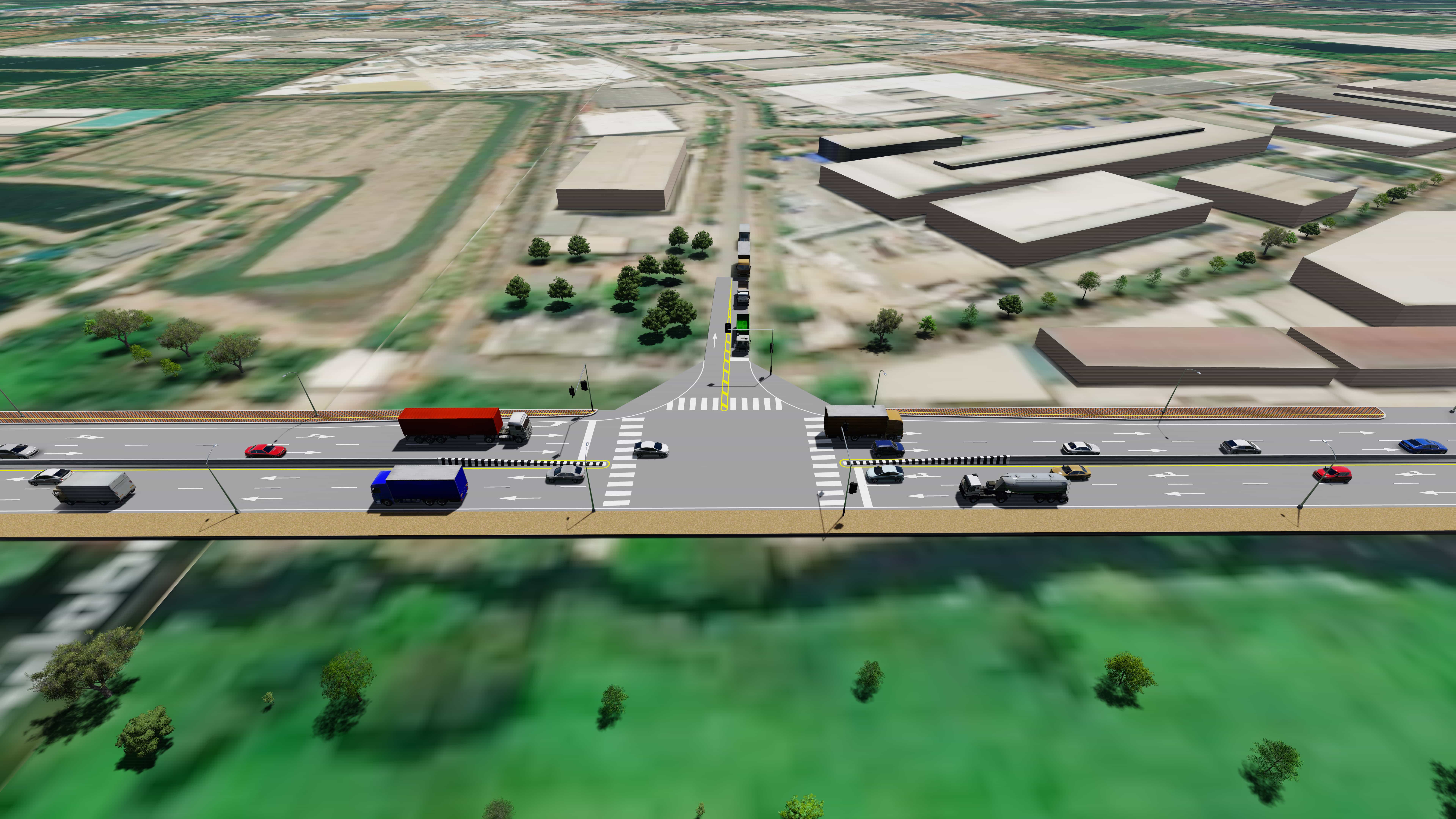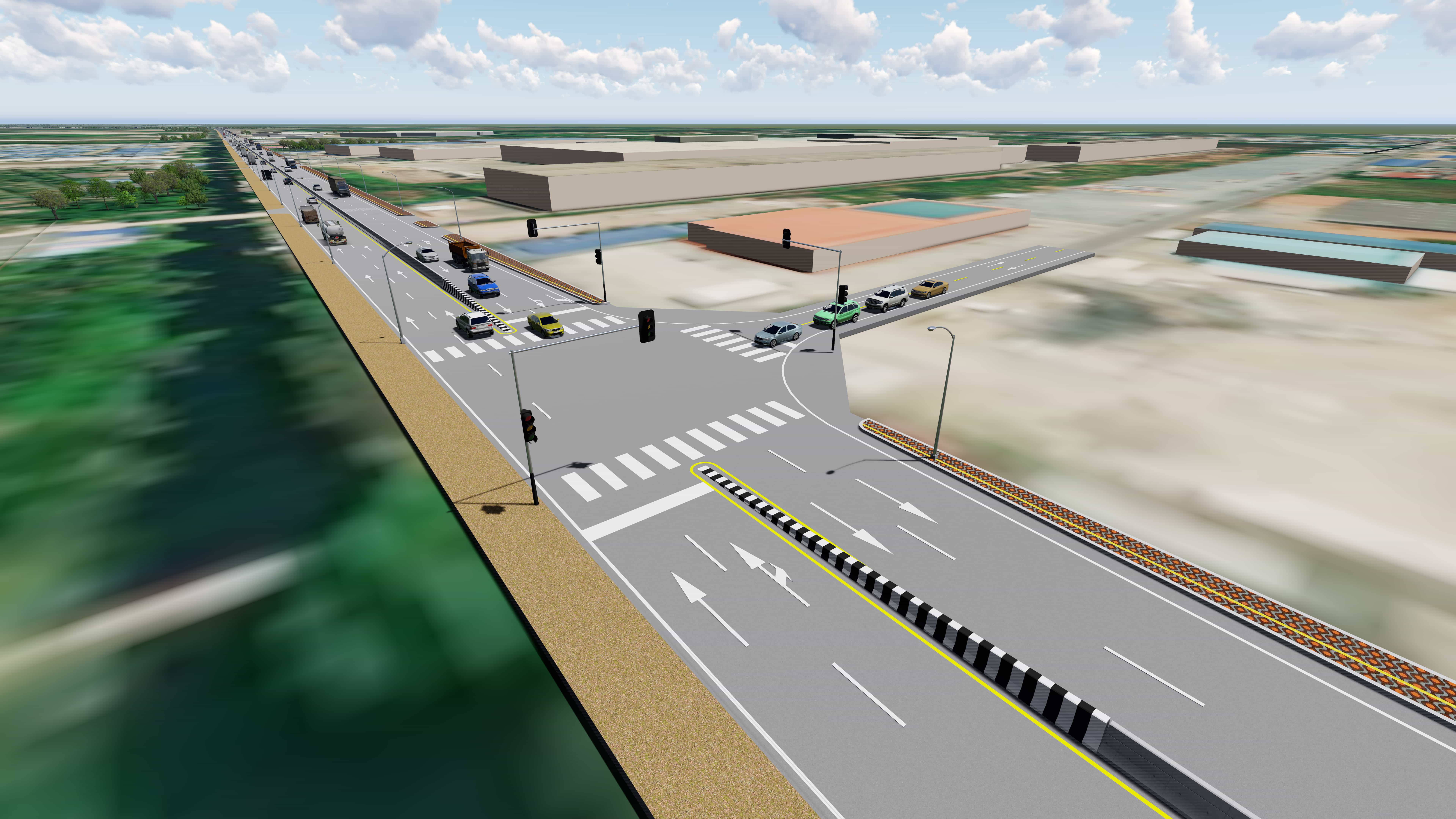 - ออกแบบรายละเอียดถนนโครงการพร้อมระบบระบายน้ำ ระบบไฟฟ้าแสงสว่างและไฟสัญญาณจราจร สาธารณูปโภคที่เกี่ยวข้อง