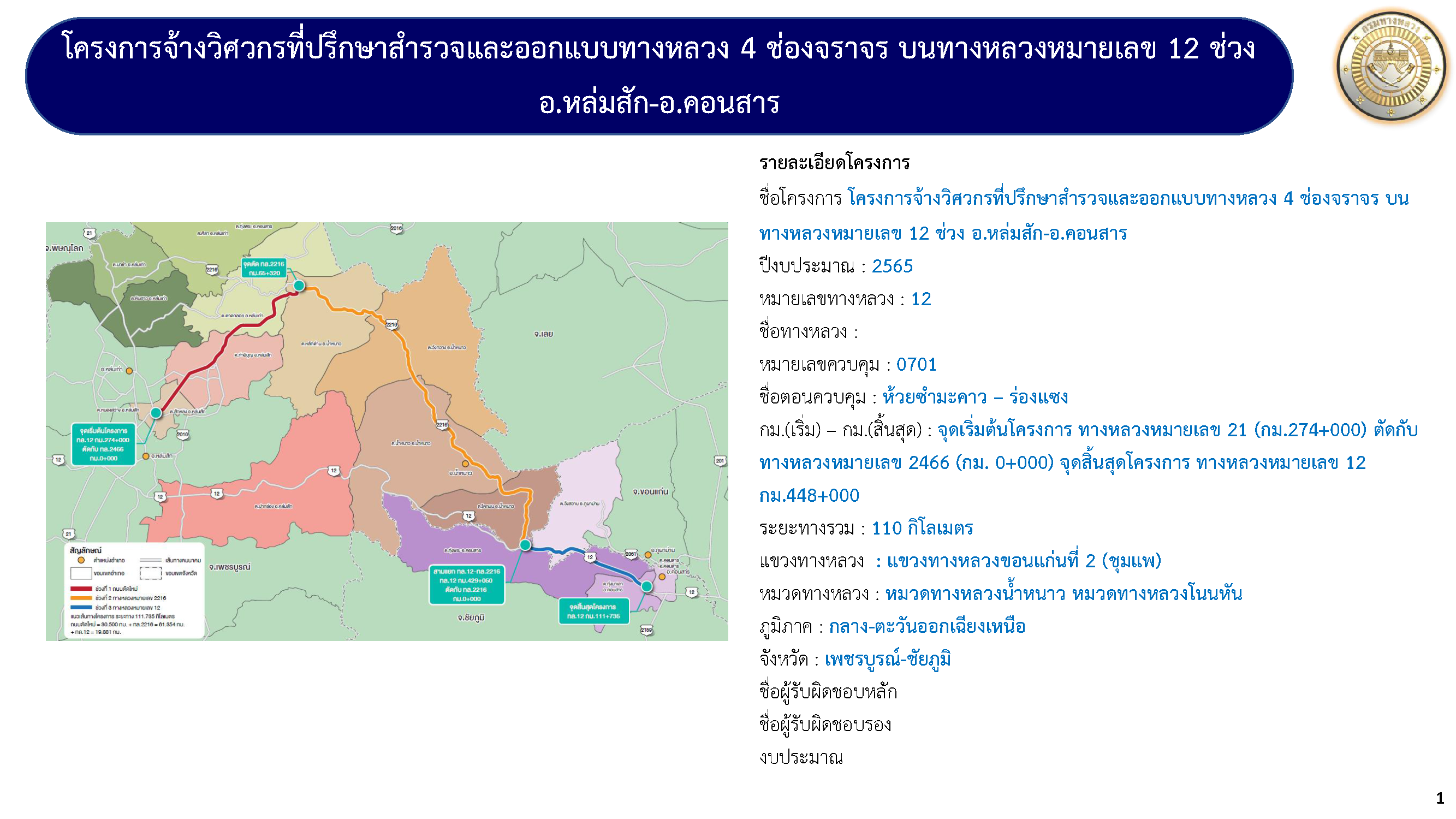 โครงการจ้างวิศวกรที่ปรึกษาสำรวจและออกแบบทางหลวง 4 ช่องจราจร บนทางหลวงหมายเลข 12 ช่วง อ.หล่มสัก - อ.คอนสาร
