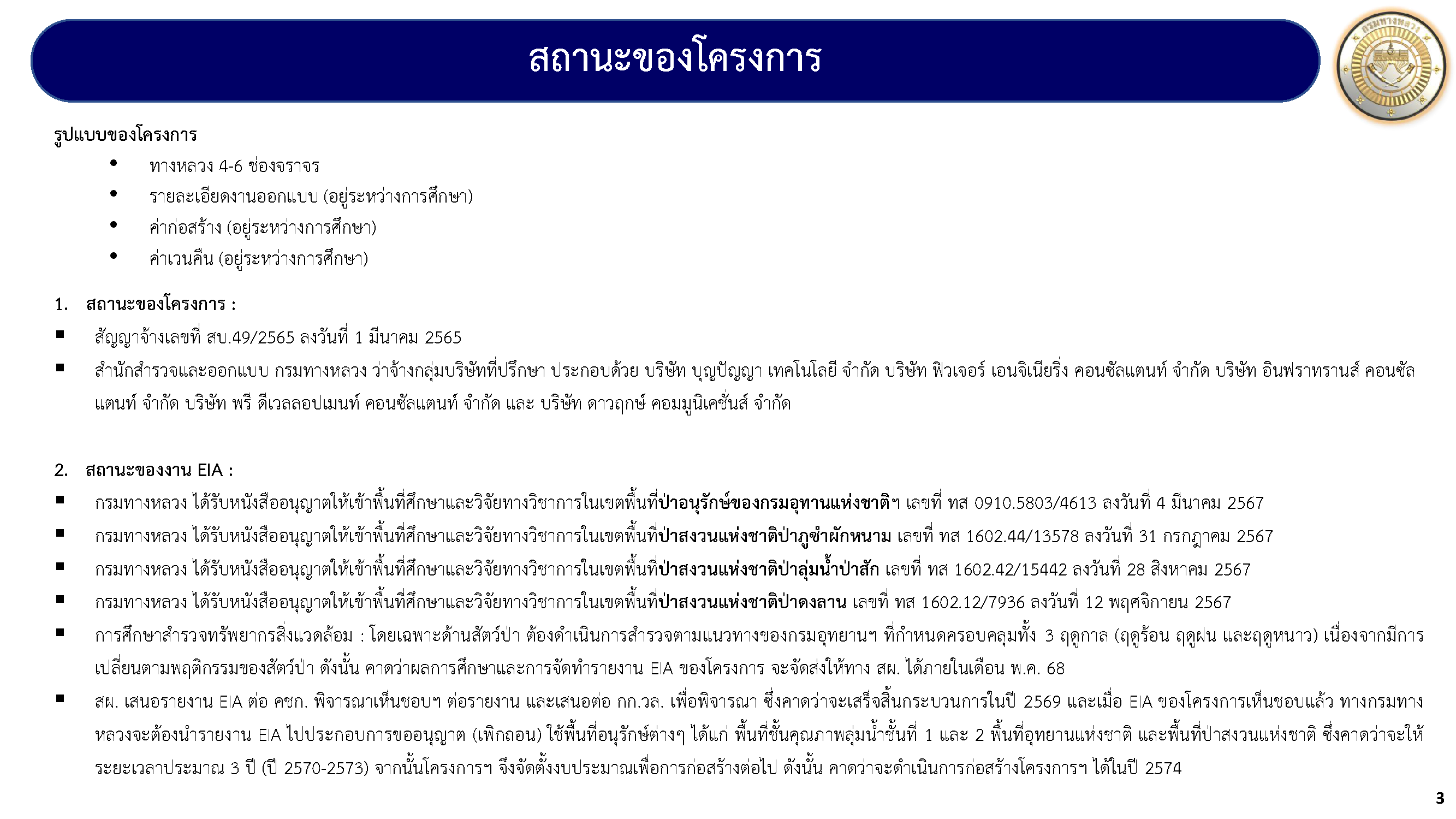 - สำรวจโครงข่ายทางหลวง และศึกษาคาดการณ์ปริมาณการจราจรในอนาคต