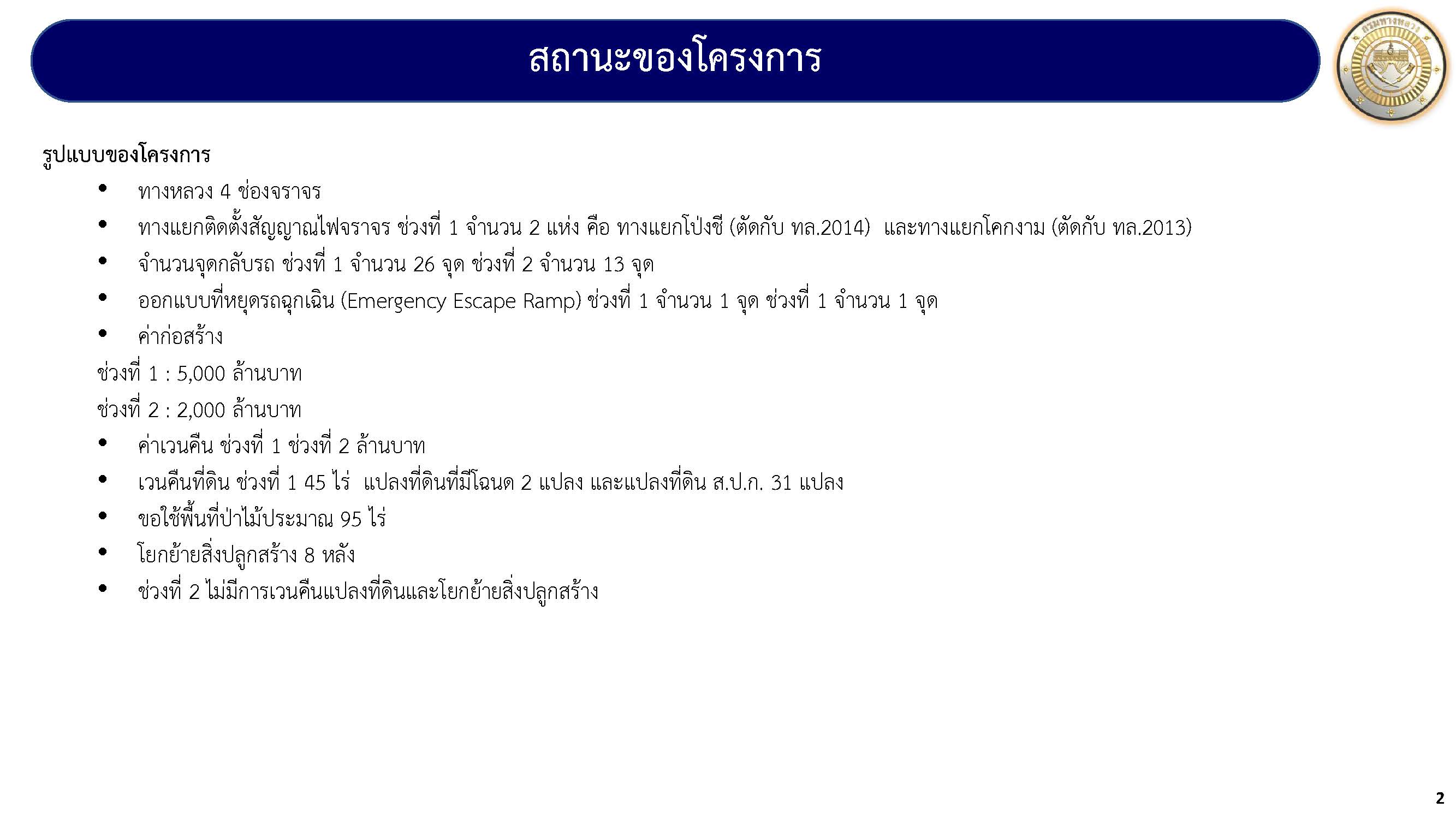 - สำรวจโครงข่ายทางหลวง และศึกษาคาดการณ์ปริมาณการจราจรในอนาคต