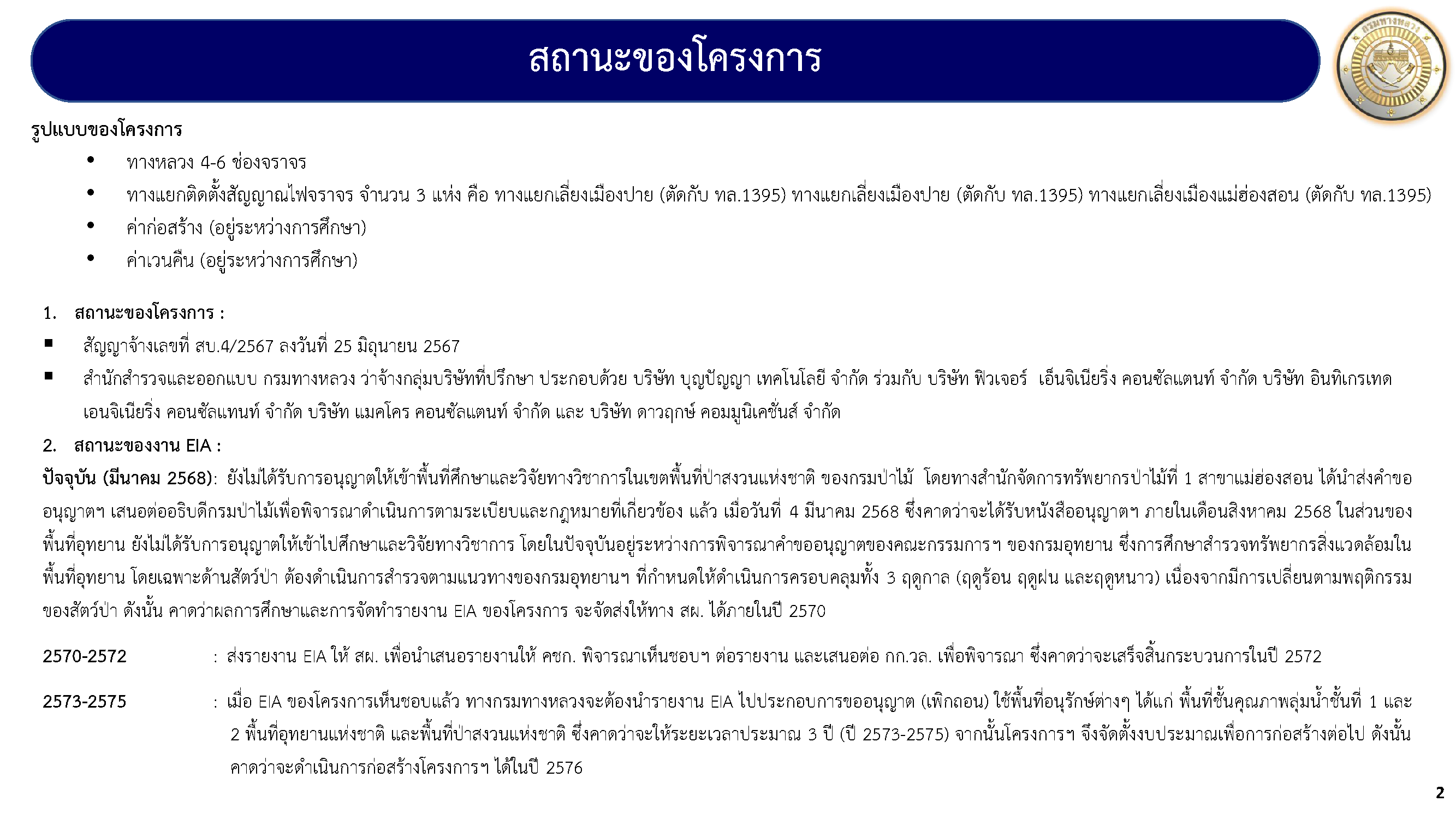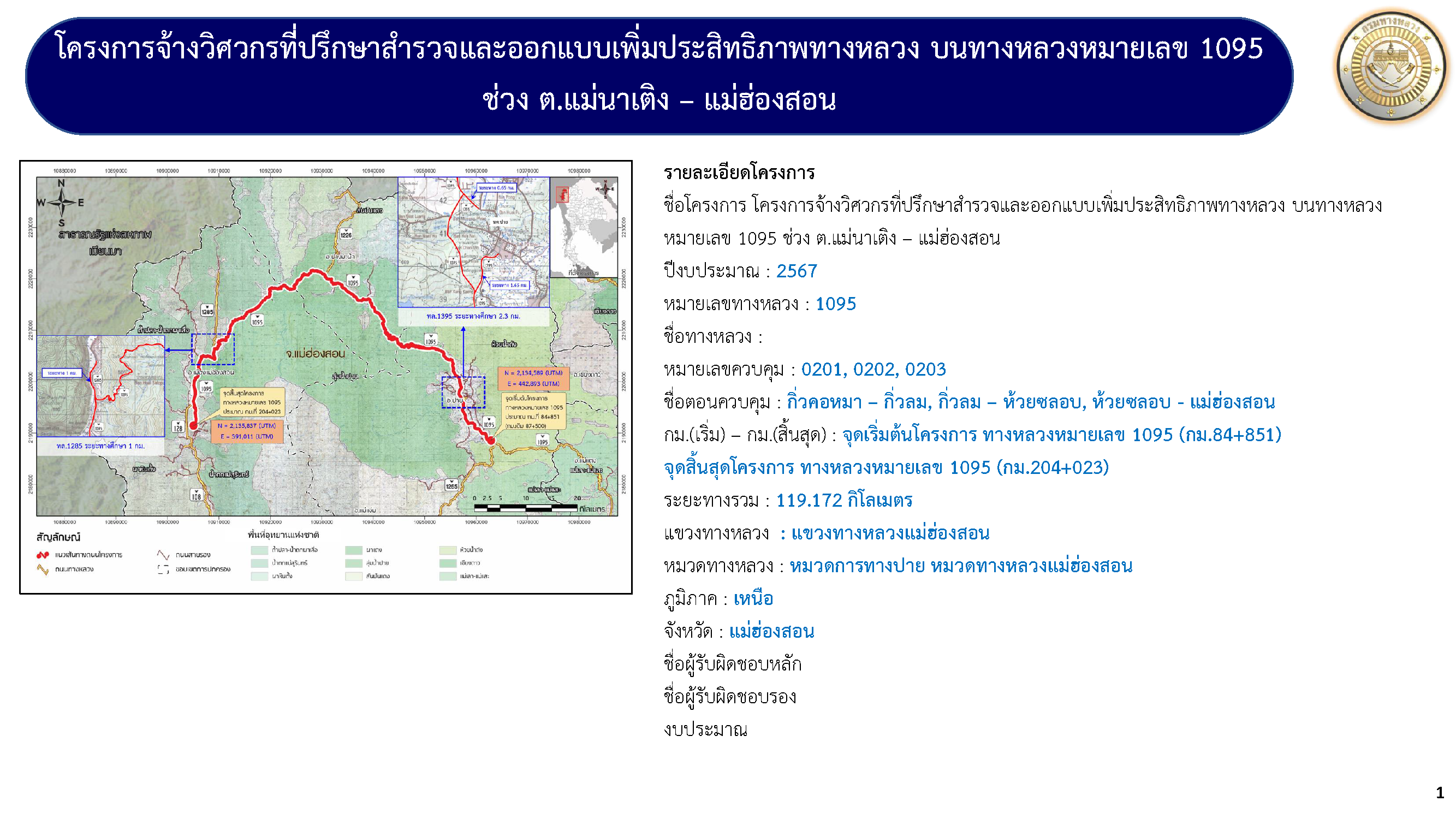 โครงการจ้างวิศวกรที่ปรึกษาสำรวจและออกแบบเพิ่มประสิทธิภาพทางหลวง บนทางหลวงหมายเลข 1095 ช่วง ต.แม่นาเติง - แม่ฮ่องสอน ต่อไป